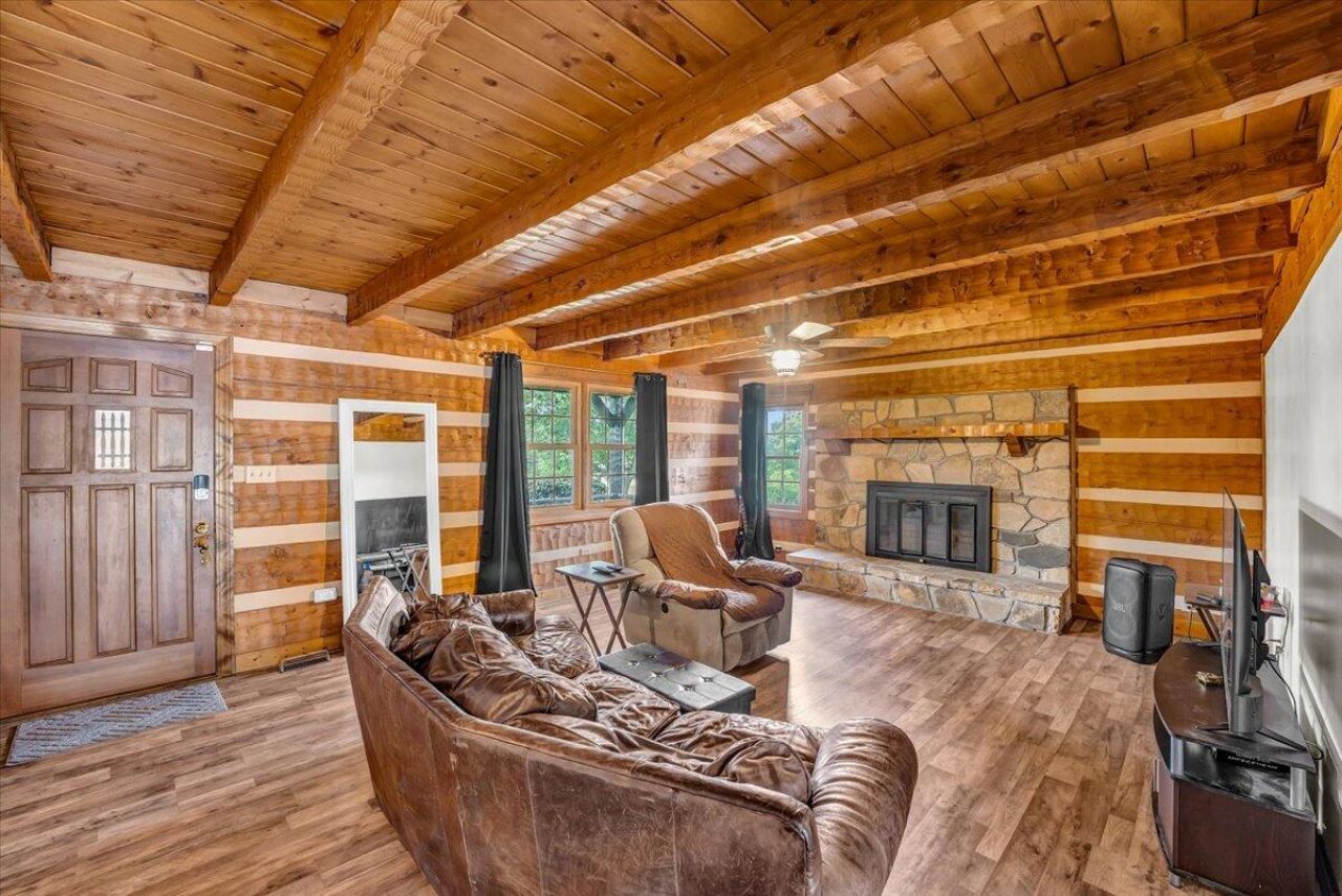 Set on nearly 2 acres in a peaceful country setting, this 4-bedroom, bonus room, 2.5-bath log home offers space, comfort, and room to enjoy the outdoors.The property features a fenced-in inground pool, a large yard for kids and pets, and a hot tub perfect for relaxing evenings. Inside, you'll find a spacious kitchen, large primary bedroom, and a cozy living room with a fireplace, all under a durable metal roof.The home will require some structural repairs and cosmetic updates and has been priced accordingly, presenting a great opportunity to add value and make it your own.Conveniently located just minutes from shopping, dining, and everyday needs, and only 2.5 miles from Panther Creek State Park and a public boat ramp on Cherokee Lake.Drone photography used. Property lines are approximate.